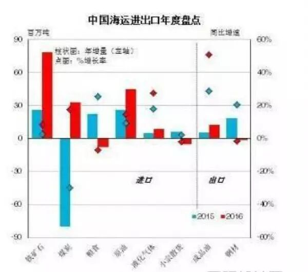 干散货进口一扫去年的疲态,成为了2016年中国海运进口量增长的主要动力。